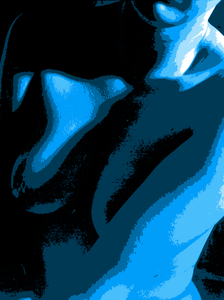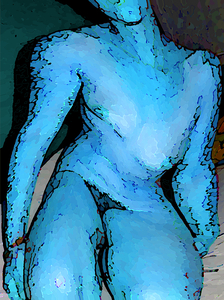 2020Beeld van een staand naakt in blauw. Het origineel is een door mij gemaakte zwart-wit negatief opname van een vrouwlijk naakt. Het gescande negatief is middels diverse digitale technieken bewerkt tot een impressionistisch beeld. Attentie: het werk wordt ingelijst geleverd. Zie voor meer info de pagina Levering.